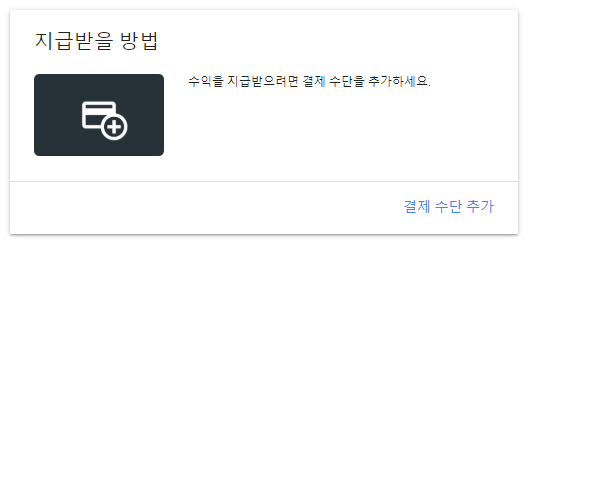 애드센스 사이트 들어가시면 왼쪽 매뉴 하단에 지급이라는 메뉴 클릭하시면 지급 받을 방법에서 결제 수단 추가를 누릅니다.