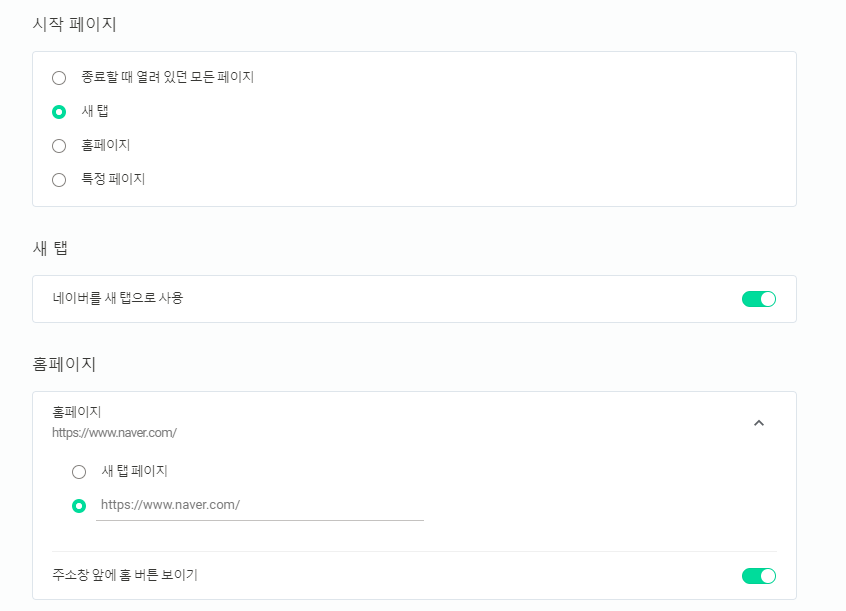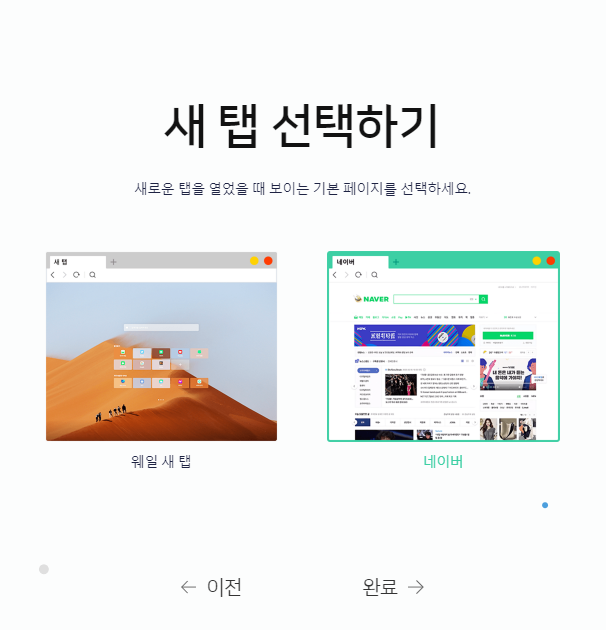 네이버 웨일 브라우저 시작페이지 설정 방법