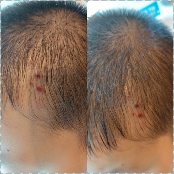 사실은 울 아들이 몇일 전부터 머리에 모리 물린듯한 상처가 있어서 밤에 모기 물렸나 하고, 물파스 발라주고, 연고를 발라줬는데, 낫지않고 계속 가렵다고 합니다.