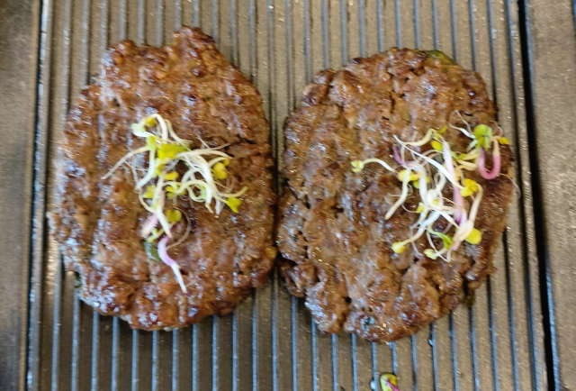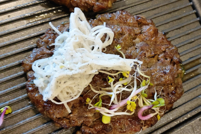 메인 요리인 떡갈비 입니다. 따뜻하게 먹으라고, 아래에 조그마한 양초를 놓아 따뜻하게 먹을 수 있었습니다.