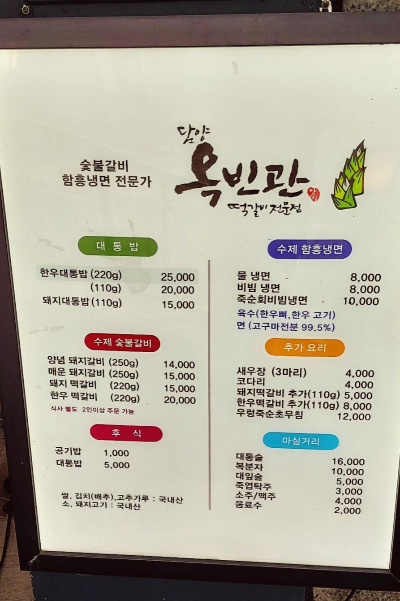 식당 입구에 옥외 가격 표시제를 시행하고 있었습니다. 한정식 식당에 맞는 가격인것 같네요.