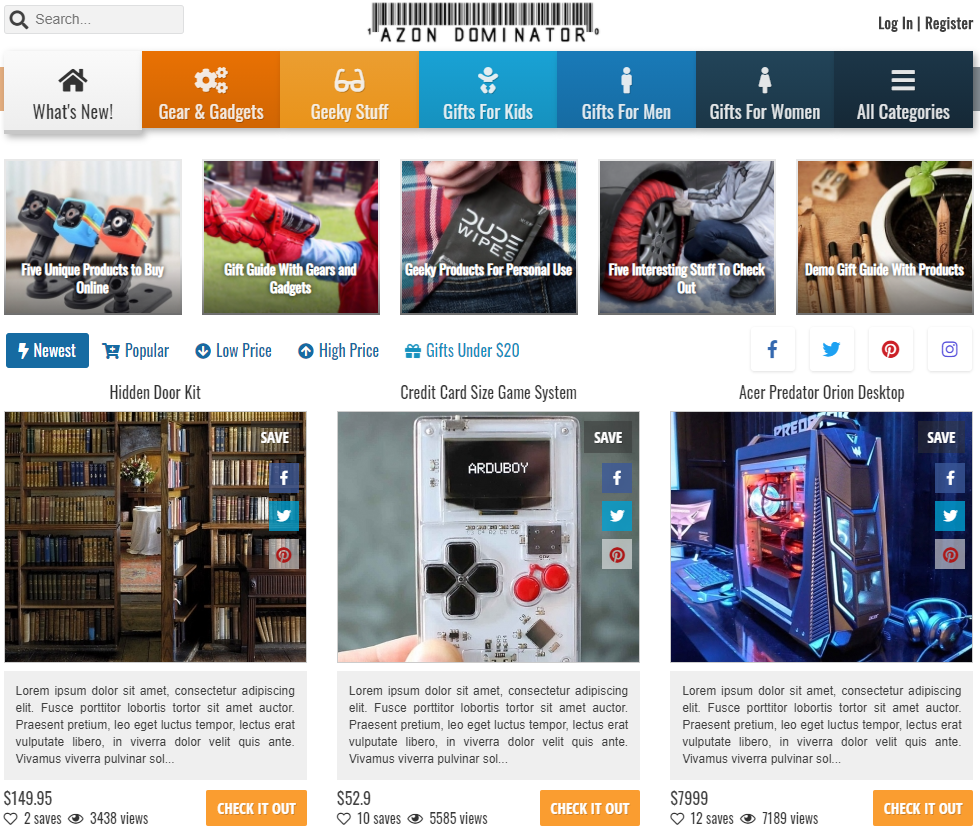 This is the result of our effort to build the best theme that looks like ThisIsWhyImBroke theme. We named it as Azon Dominator (previously it was Amazon Dominator). This is not a WordPress theme. It's a PHP script that you can install on your normal hostin