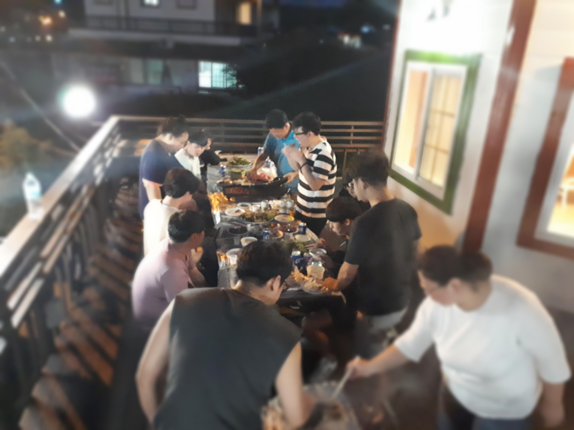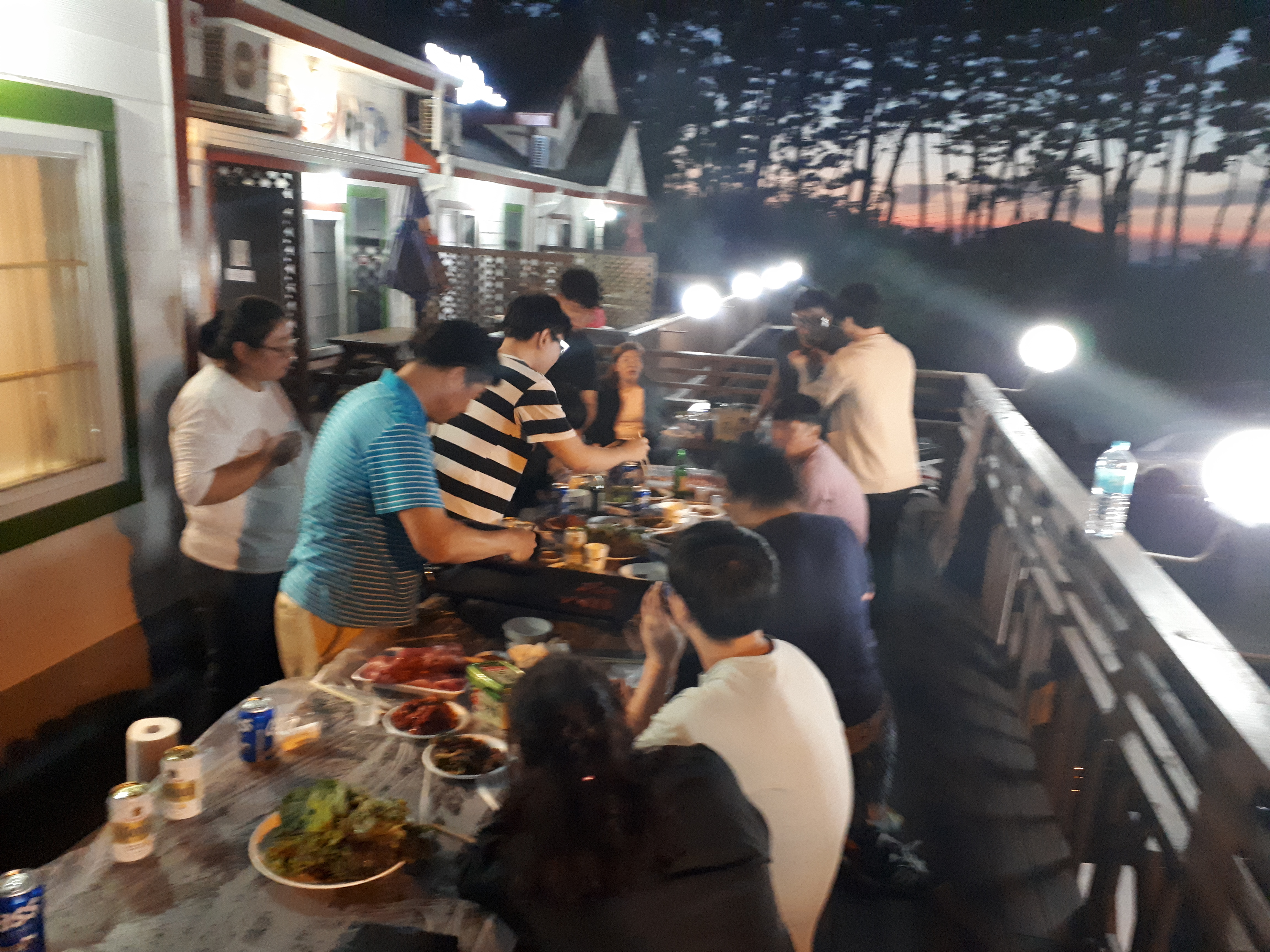 숙소에서 저녁 먹는 타임~~테라스가 넓어서 가족단위로 오시면 좋을것 같아요.