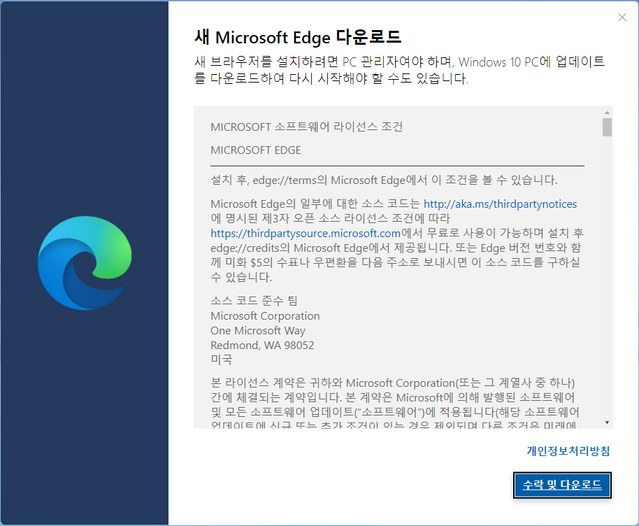 2. 기본 레거시 엣지 브라우저로 롤백할 수 없는 단점이 있습니다.