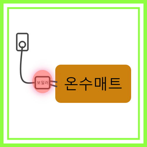 온수매트는 전기보일러와 매트가 조합되어 있으며, 보일러에서 물을 끓인후에 매트와 연결된 호스를 따라 온수가 순환되며 열기가 매트 표면을 따뜻하게 만들어 줍니다.