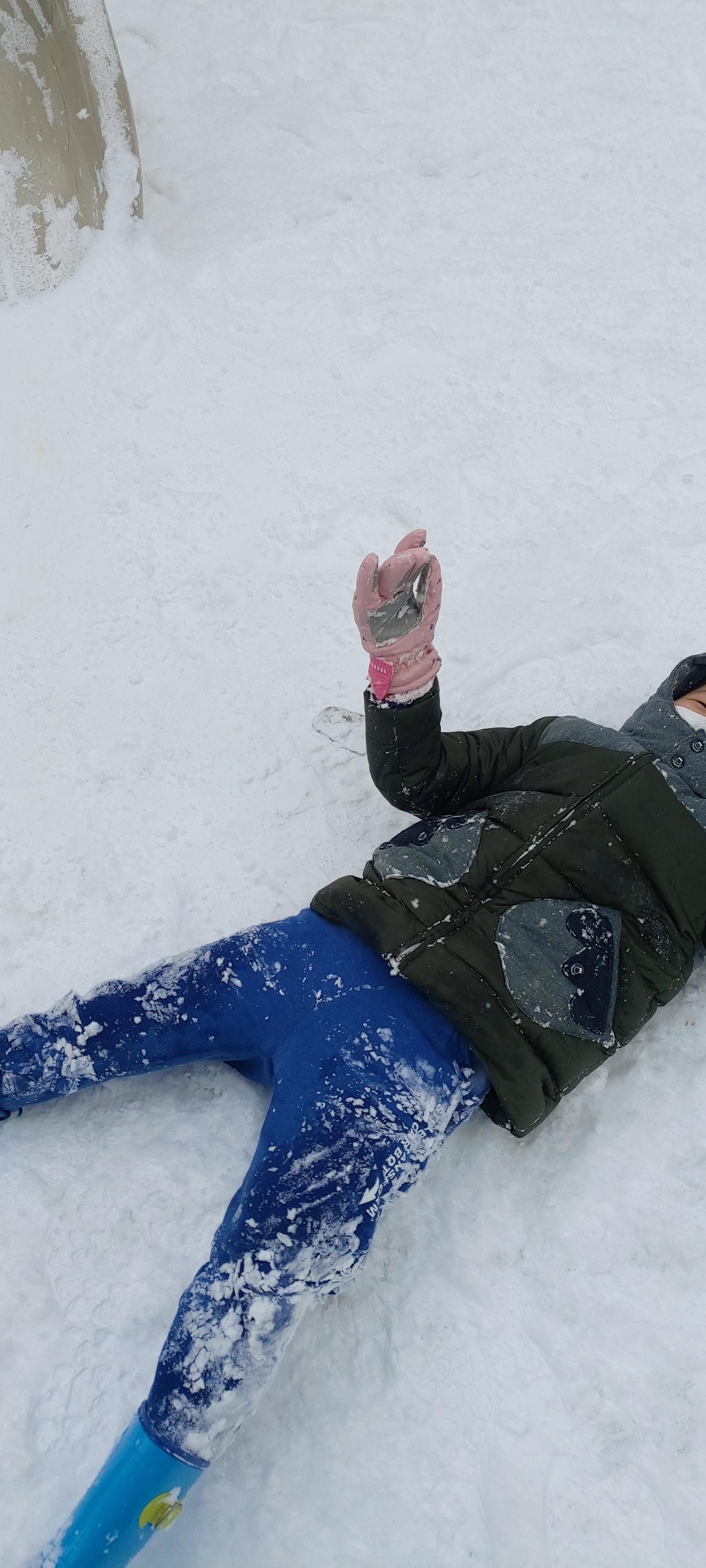 눈밭에 아예 누워서 뒹굴면서 놀고 있어요.