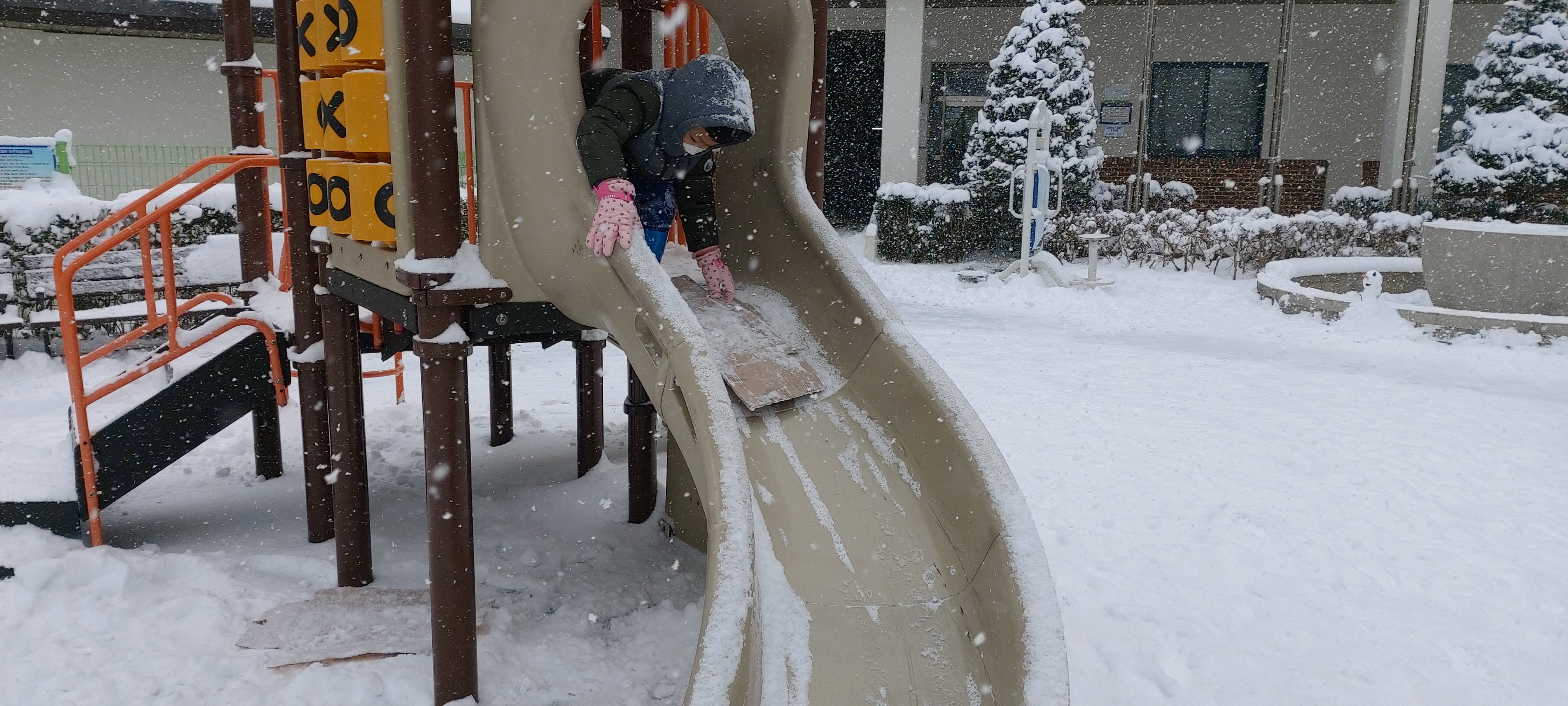 옛날 저희 눈밭에 놀때~비료푸대하고 종이조각으로 썰매대용으로 놀았던 기억이 있는데, 미끄럼틀위에 종이 조각 깔고 엎드려서 내려오네요^^♡