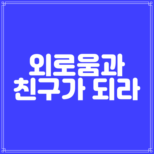 외로움을 하나님을 만나는 절호의 찬스로 이용하자!!
