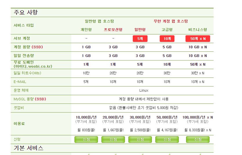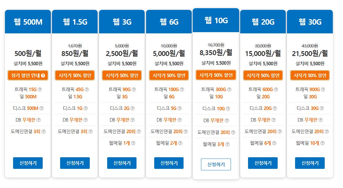 더 많은 호스팅 업체들이 있는데요. 카페24나 아이비호스팅,가비아호스팅, 등등 많이 있는데..사용해보지 않아서