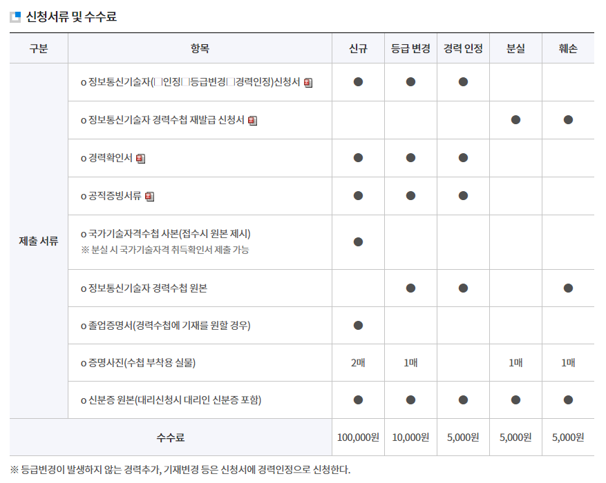 수수료의 경우에는 신규발급은 10만원 ( 경력신고 수수료: 7만원, 경력관리 수수료:2만원, 경력수첩발급 수수료 :1만원)