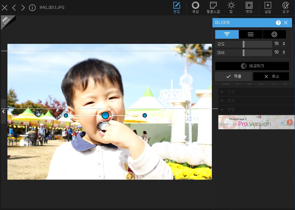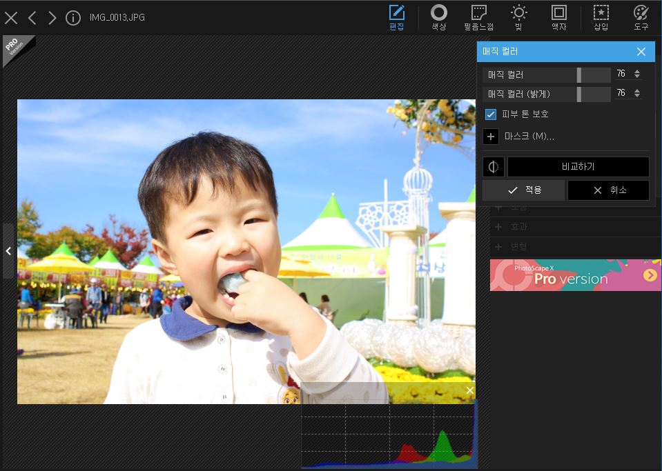 사진이미지를 뽀얗게 만들어주는 기능입니다.^^*
