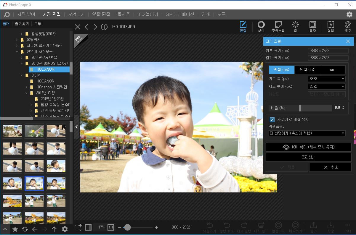 4)16배 확대(세부묘사 유지) : 이미지가 1024 이하 사이즈 일경우 16배까지 확대해서 조절할수 있습니다.