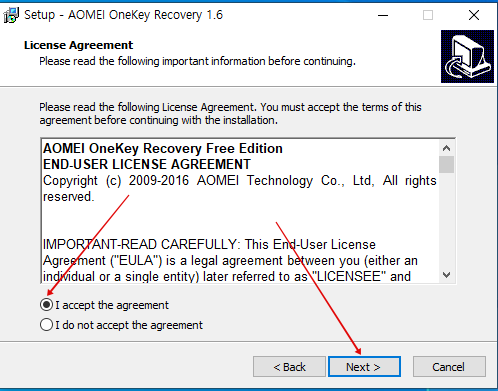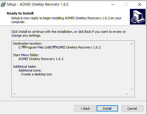 AomeiOnekey 1.6.2 설치방법