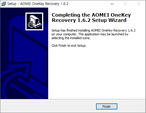 설치 완료 되었습니다. Finish 눌러 창을 닫으면 AomeiOnekey 1.6.2 프로그램이 설치완료가 됩니다.