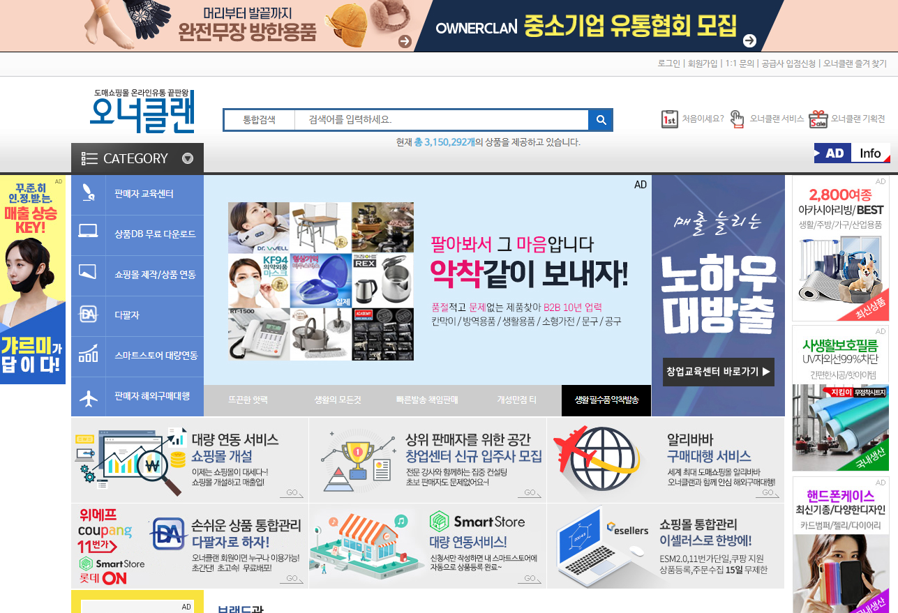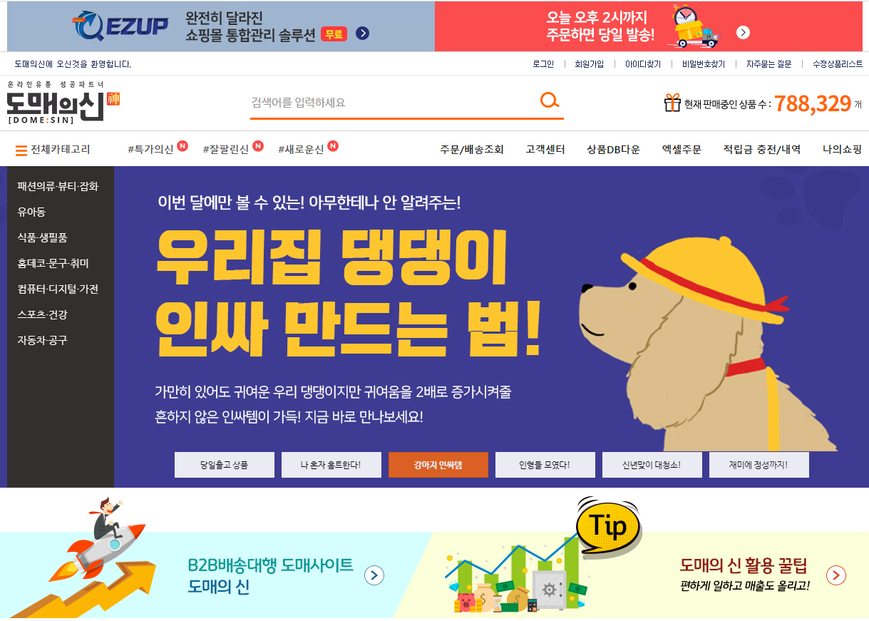 B2B 도매사이트중에 가장 핫한 사이트인것 같습니다. 총 상품등록수가 300만개가 넘게 올라가 있습니다.