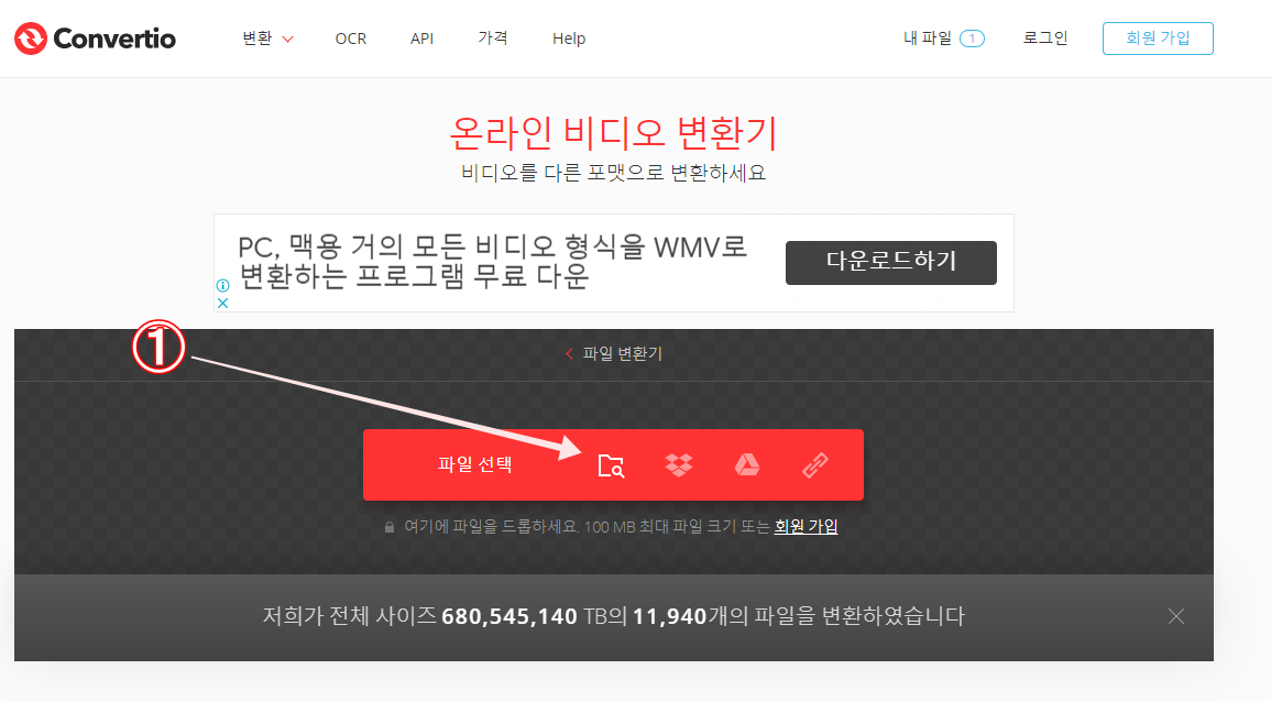 변환 > 비디오 컨버터 들어가시면 온라인 파일변환기가 나옵니다.