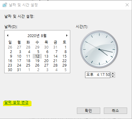 날짜 및 시간 설정에서 달력 설정 변경 형광펜 색칠 부분 클릭합니다.