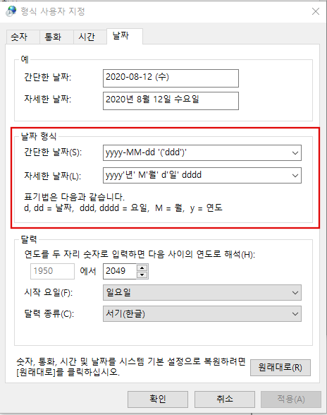 Window10 날짜 시간에 요일 넣는 방법 꿀팁